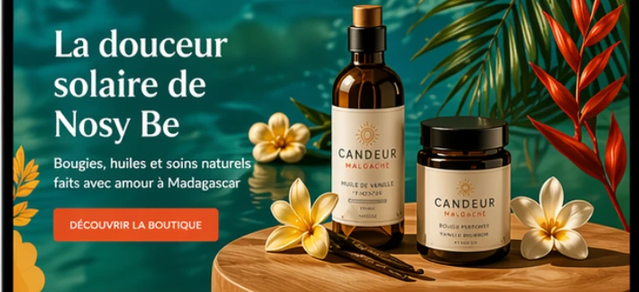 La collection complète de l’atelier : bougies, soins corps, bain et cheveux à la vanille Bourbon. Stock, formats et livraison se confirment directement sur WhatsApp.